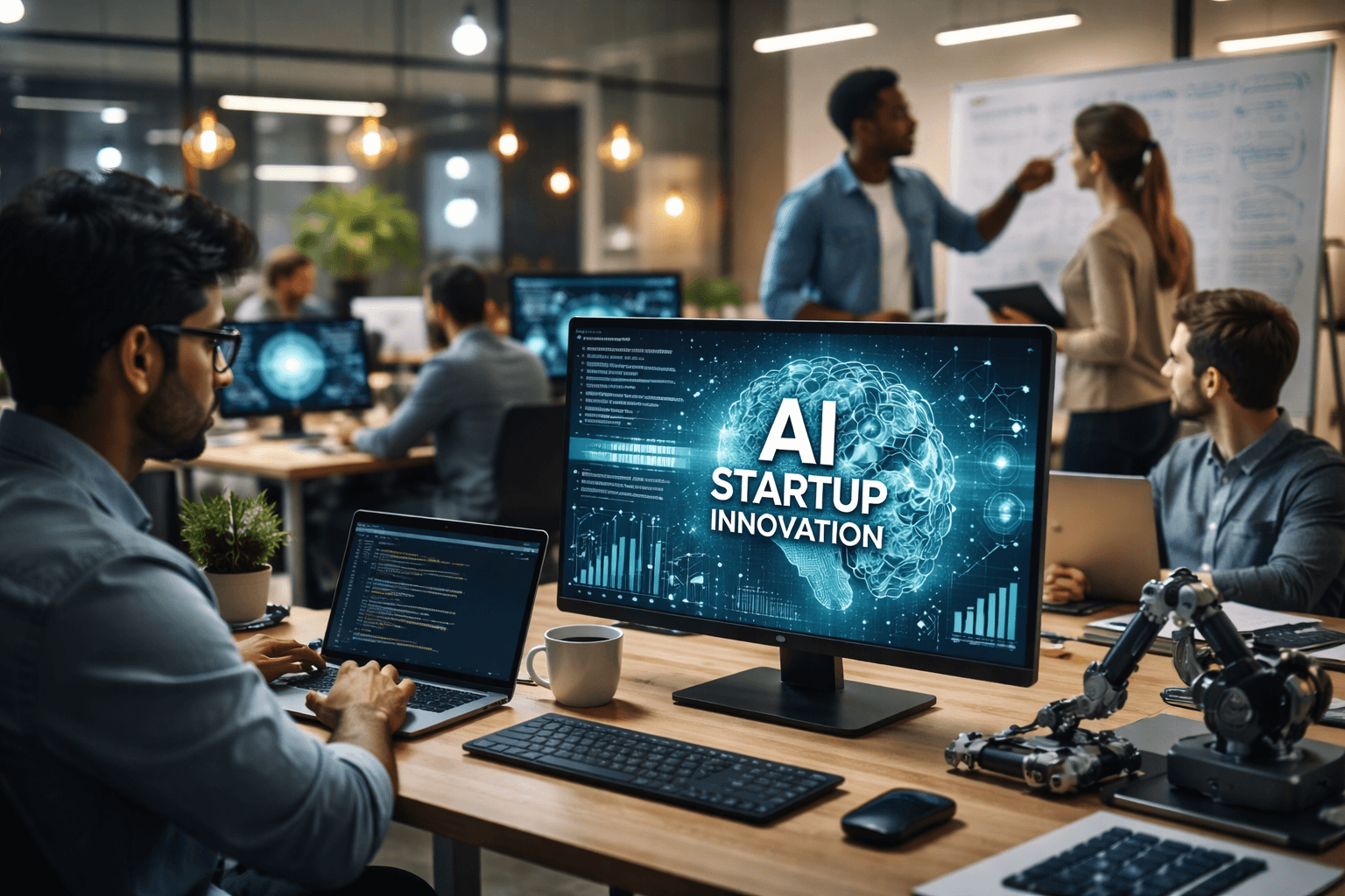 Self-correcting AI system detecting errors and automatically revising output on a computer screen in a modern workspace